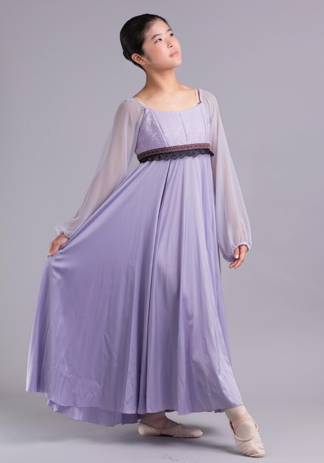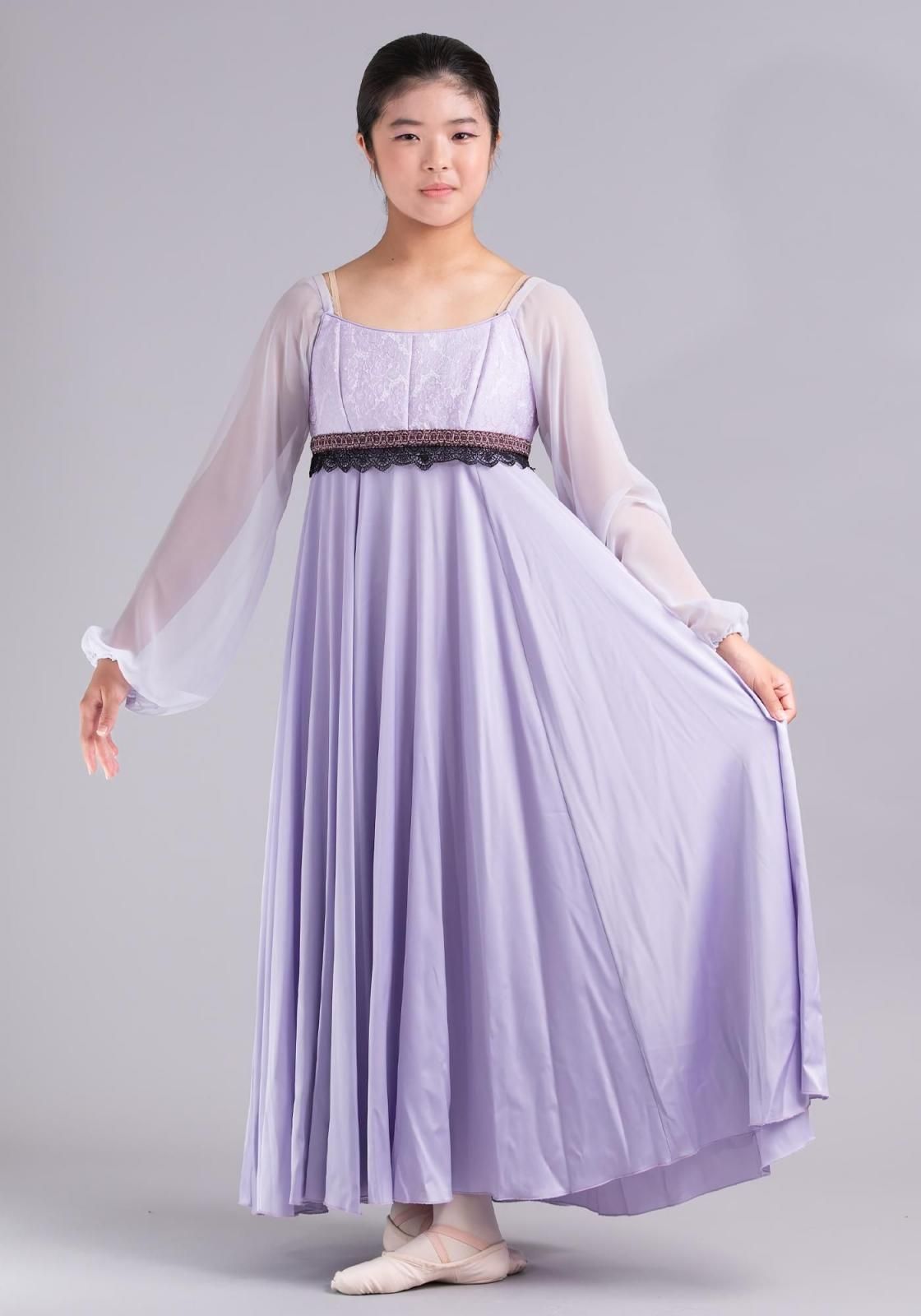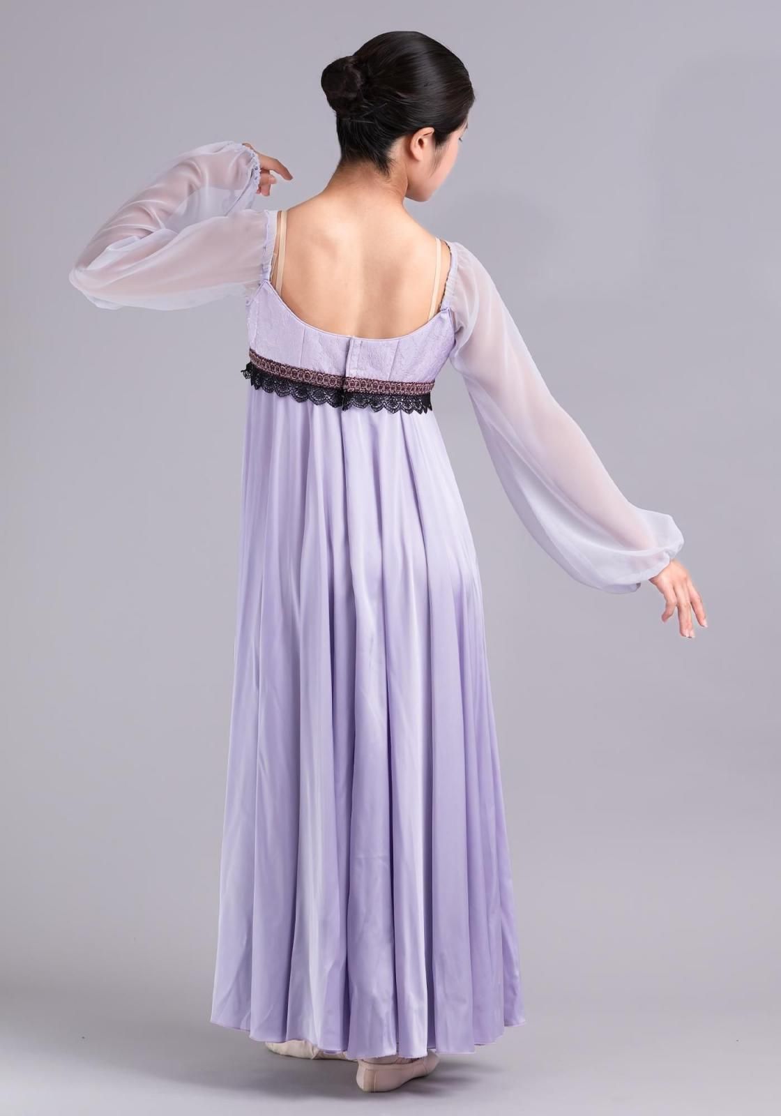 胸元のジャガードが上品なロング丈の衣装で、エンパイアライン(胸の下で切り替え)のドレスです。