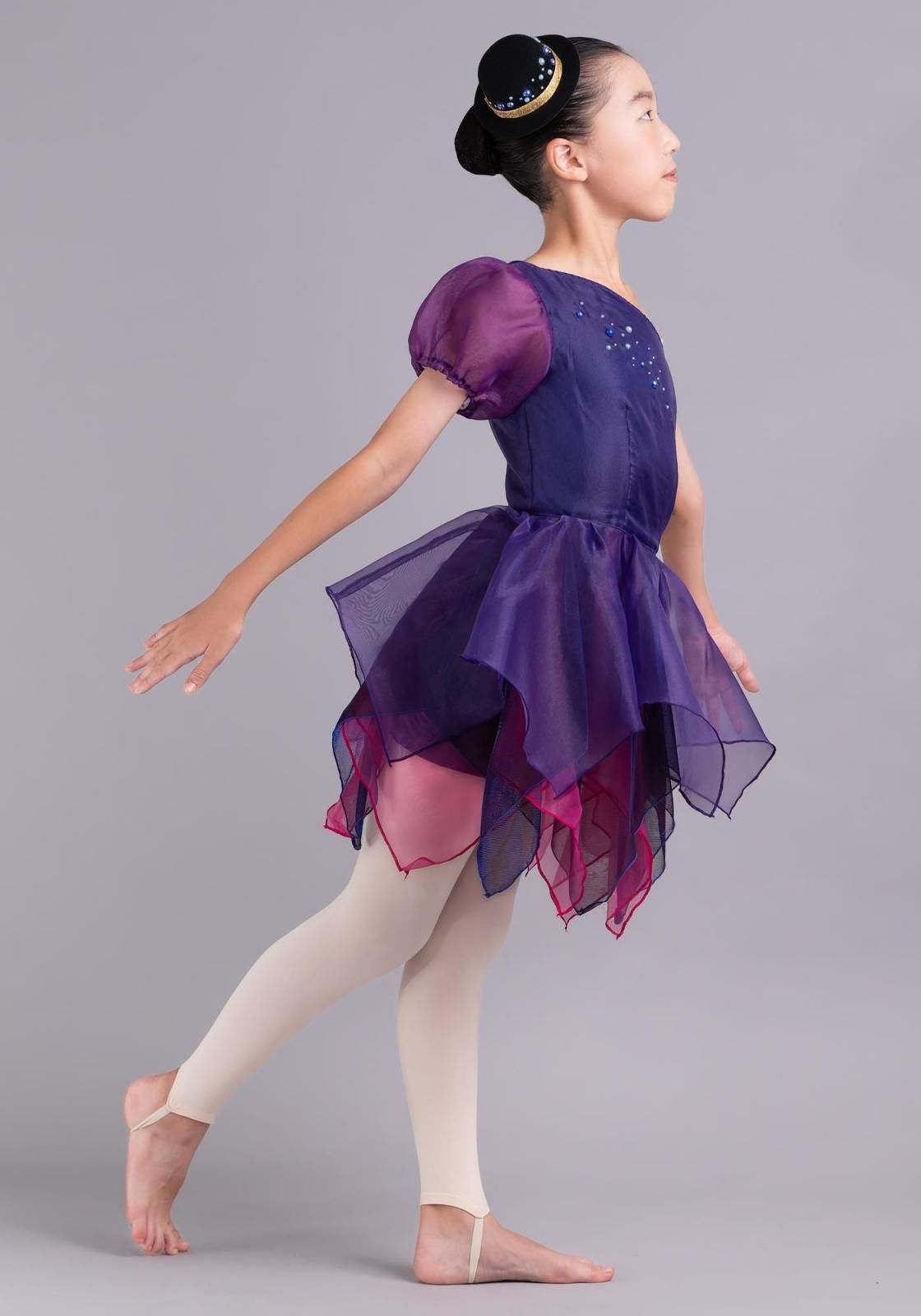スカートはオーガンジーやラメニット、ラメチュールなどを使用した4段スカートで、華やかなアクロバットにおすすめの衣装です。